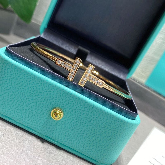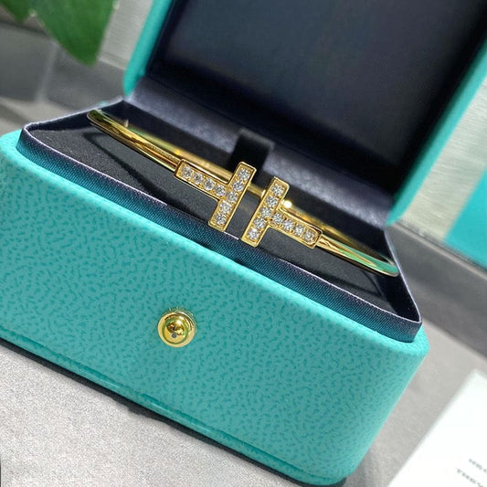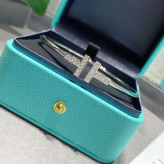 18K T Lock Bangle Half Pave Diamonds Bracelet