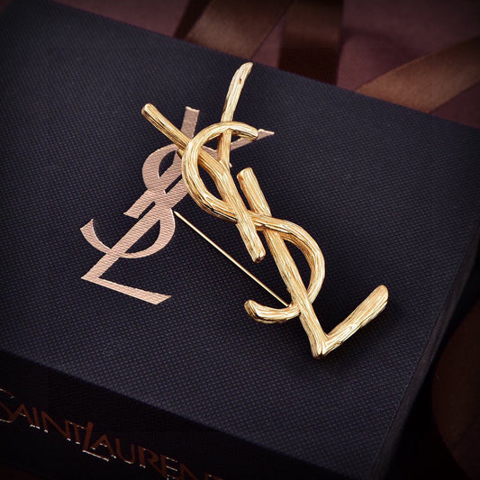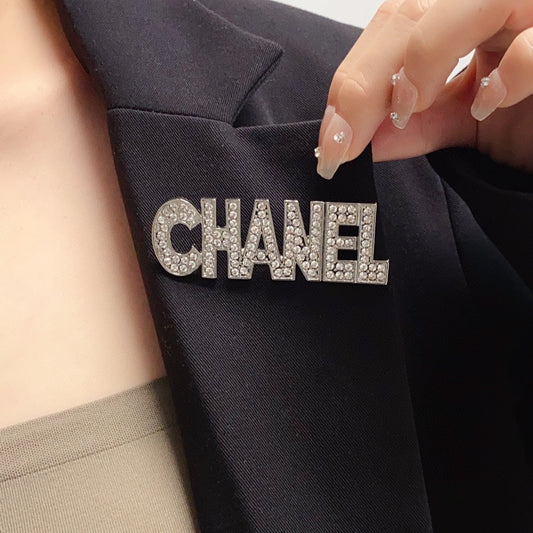 18K CC Crystals Letter Brooch