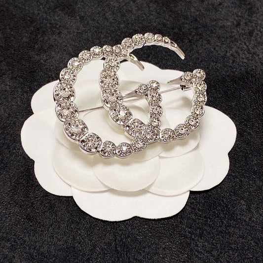 18K Double G Color Crystal Brooch
