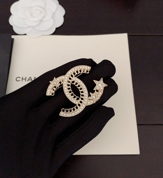 18K CC Star Crtystal Brooch