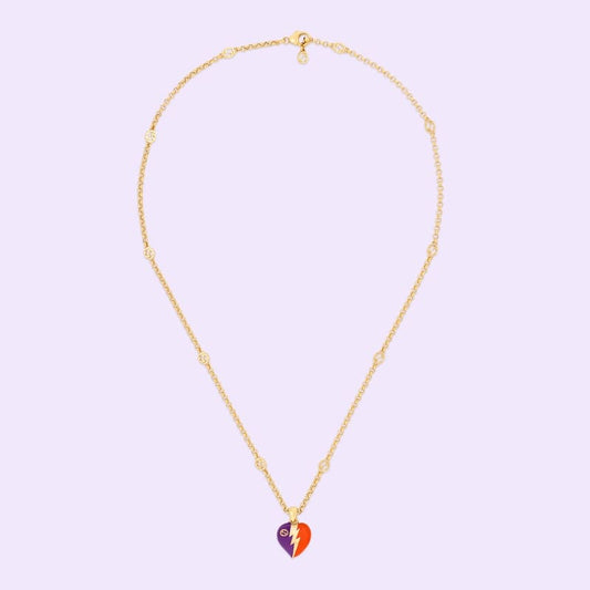 18K Double G Interlocking G Heart Lightning Charm Necklace