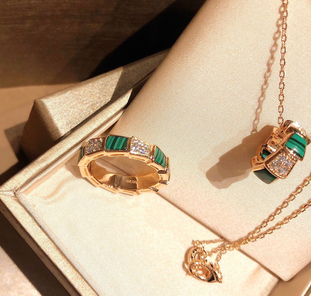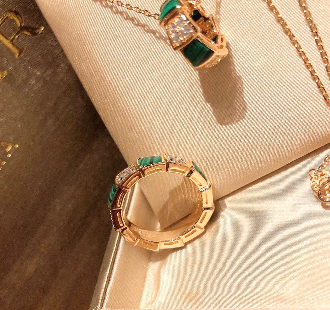 - Rings with 18K Rose Gold & Malachite ,Pave Diamonds