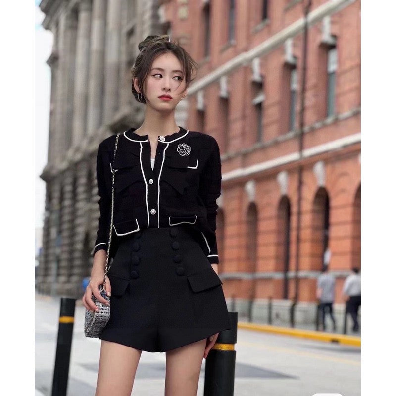 18K CC Camellia Black & White Brooch