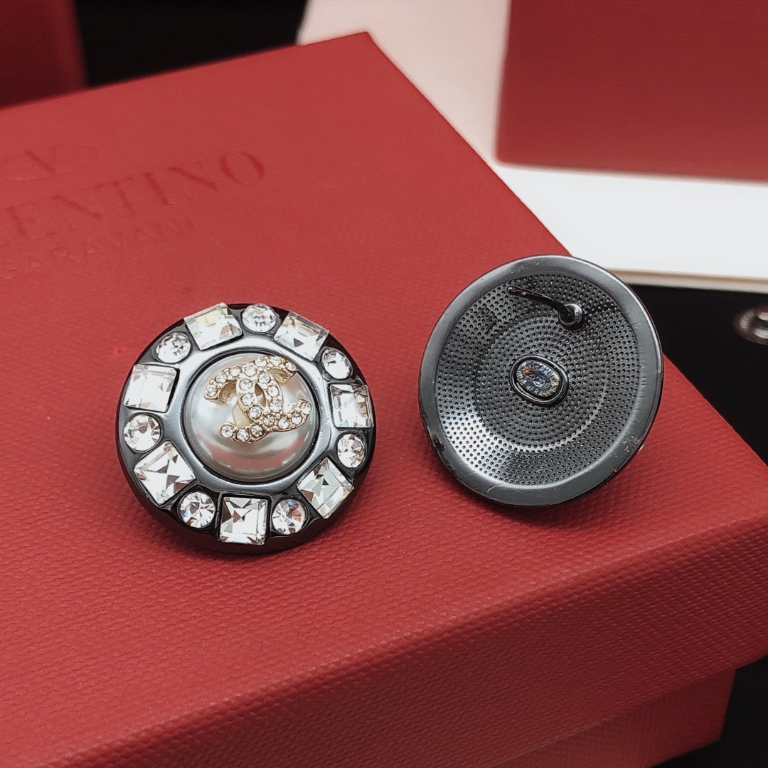 18K CC Crystals Black Earrings