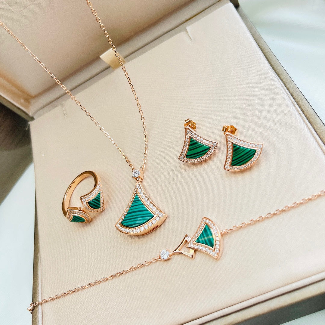 - Rings with 18K Rose Gold & Malachite ,Pave Diamonds