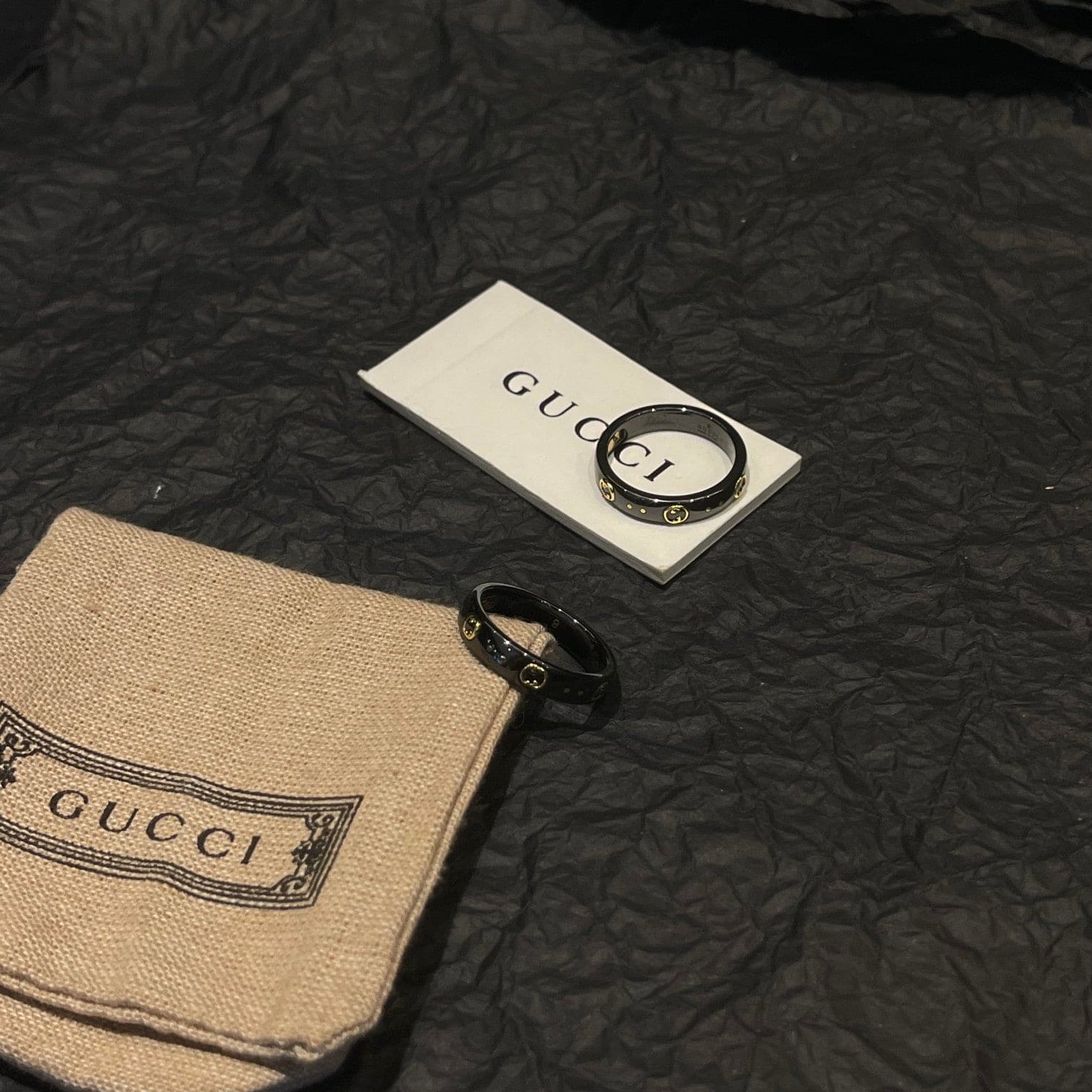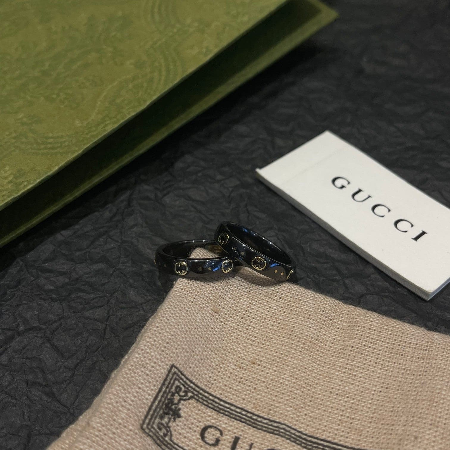18K Double G Icon Black Corundum Ring
