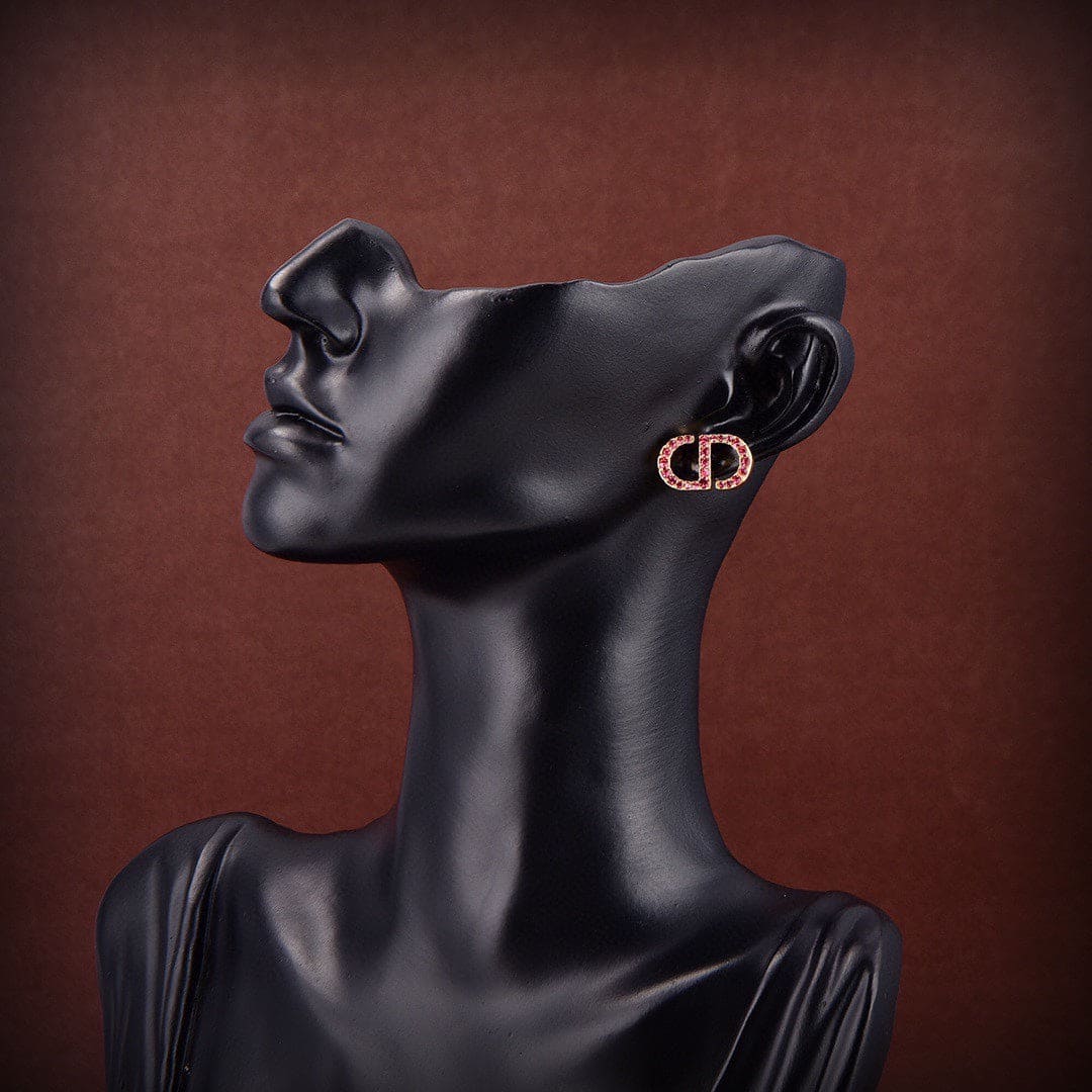 18K Petit CD Stud Fuchsia Crystals Earrings