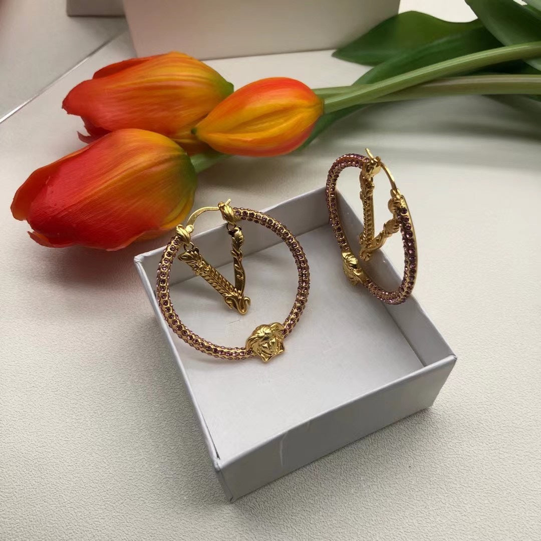 - Earrings with 18K Yellow Gold & Pink Crystals