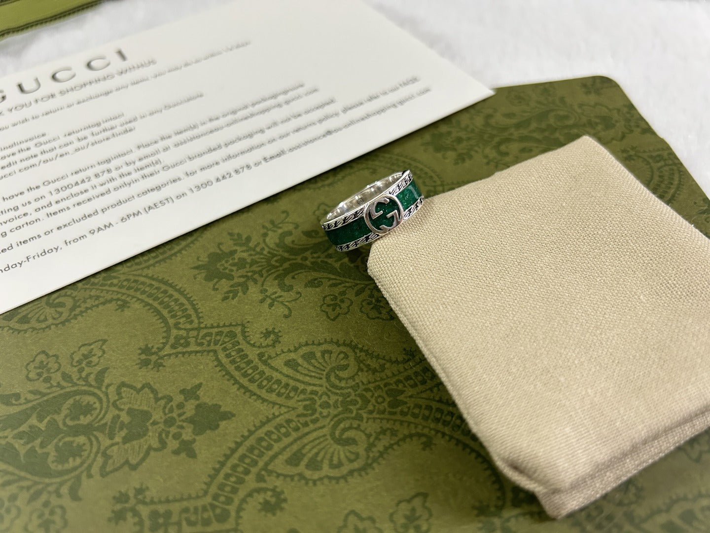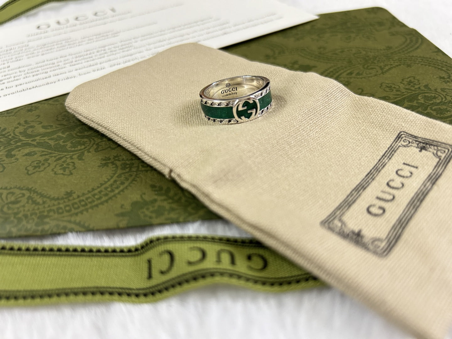 Double G Interlocking G Turquoise Enamel Ring